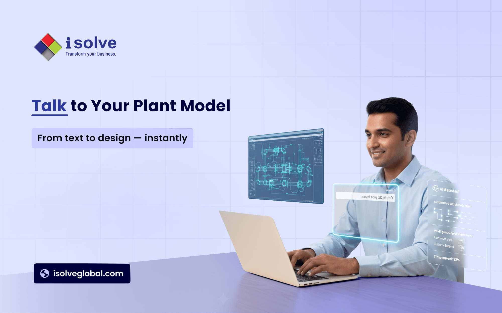 At iSolve, our AI-enhanced solutions integrate NLP capabilities within our advanced 3D Plant Engineering Design Software, enabling smarter modeling workflows.
