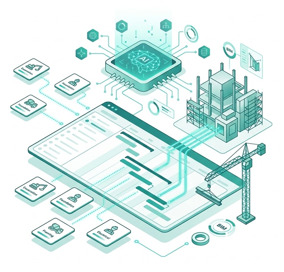 AI-powered scheduling engine enabling automated task sequencing, predictive planning, and critical path calculations that accelerate construction project execution.