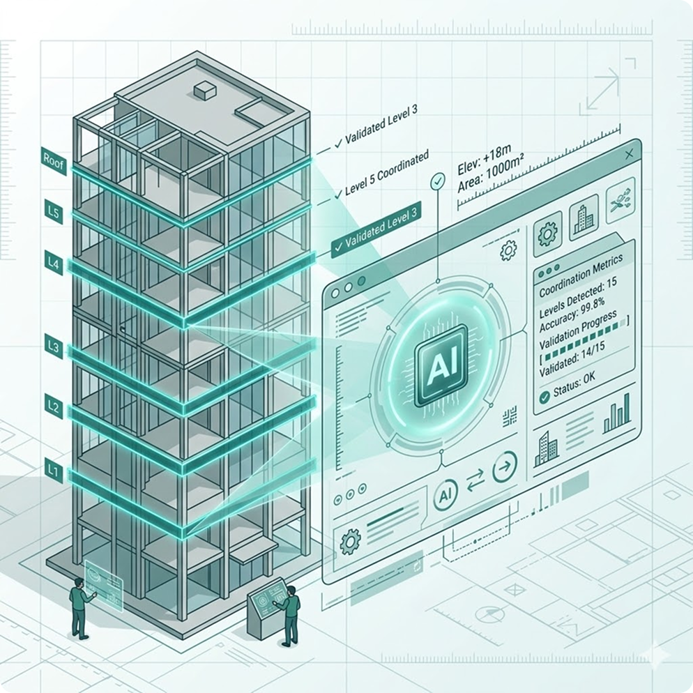 Automated level detection and consistency validation across complex BIM models, ensuring precise model alignment and drastically eliminating manual coordination effort.